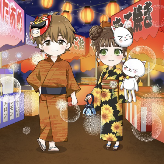 ふたりで一緒に屋台巡り💑食べて遊んでふたりで笑って…とびきり楽しい夏時間を満喫中✨笑顔の花が咲き誇るれば、ひまわり浴衣が一番似合う素敵レディに💖