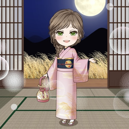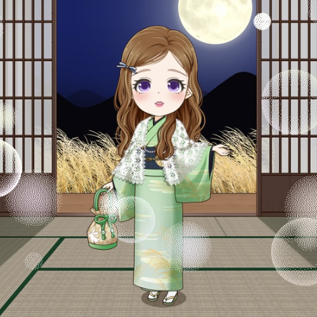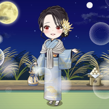 秋風ふわりと袖先揺らし、深まる秋をシックに彩る🍁月の絵柄に兎が舞うように秘めた想いも飛び跳ねる💕しっぽり過ごすお月見デートの和装スタイル👘