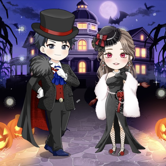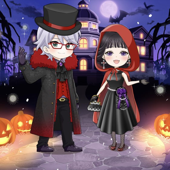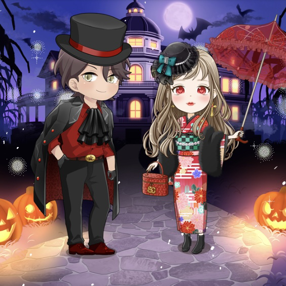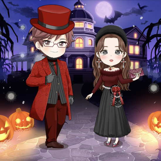 黒と赤を基調にしたセクシーシックなゴージャススタイルに着替えたら、カレのエスコートでハロウィンマンションへ🎃