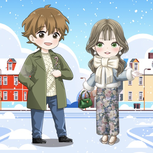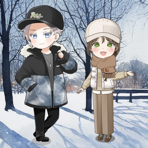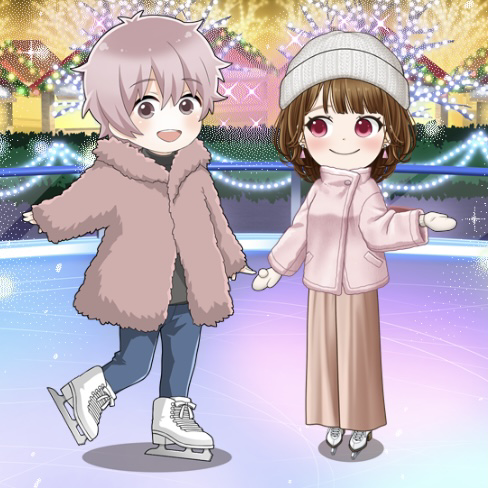 優しい色合いのもこもこコーデで寒い外もへっちゃら♪凛とした風を感じカレと一緒に氷の上で手をとりダンス👫