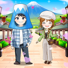 富士山になりきるカレの姿に思わず溢れる笑顔✨笑いの絶えない楽しい旅で忘れられない思い出がたくさん溢れること間違いなし♪動きやすいパンツスタイルには春の芽吹きを感じさせるグリーンのジャケットを羽織って🍀