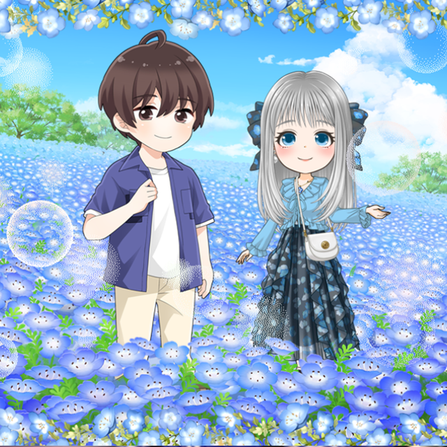 一面ブルーの世界に映えるネモフィラ柄の純白ホルターネックワンピ🤍たおやかな深いブルーの美髪にふんわり揺れるシフォンリボンの美しい姿にカレも思わずうっとり…✨
