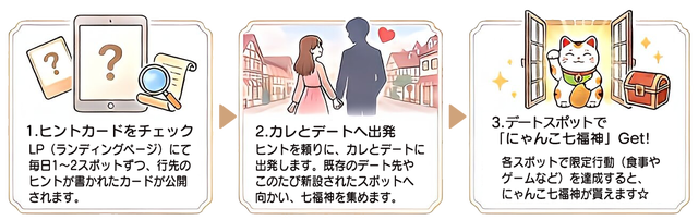 ■L/O(ラストオーダー:参加締切)を過ぎると、本イベントにはご参加いただけません。L/O期間終了後は各七福神のヒント下部のボタンを押すことができなくなりますので、あらかじめご了承ください。
